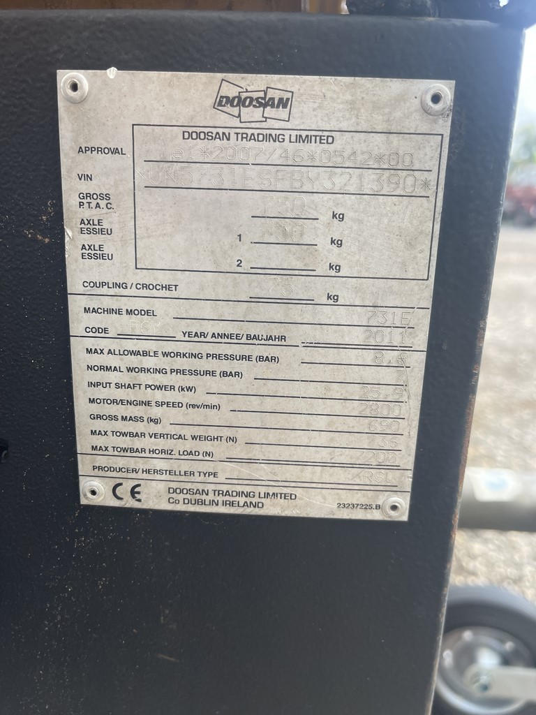 descriptif Compresseur Ingersoll Rand Doosan 7/31E Année 2011 D'occasion